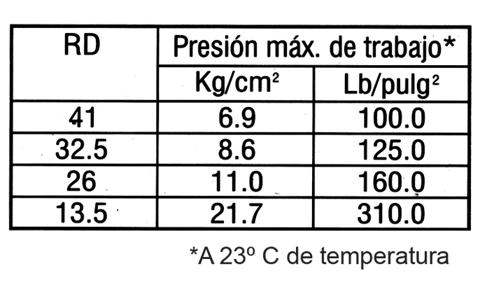 Diseñado en base al sistema de unidades inglesas. Se fabrican en diámetros que van desde 1 1/2" (38 mm) hasta 8" (200 mm). Su presión de trabajo va en función de la relació entre el diámetro exterior del tubo y su espesor de pared. (RD).